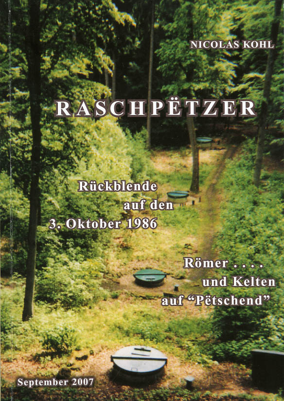 Nicolas Kohl, Raschpëtzer. Rückblende auf den 3. Oktober 1986. Römer ... und Kelten auf "Pëtschend". September 2007. 15,5 x 22 cm, 112 pp. photo